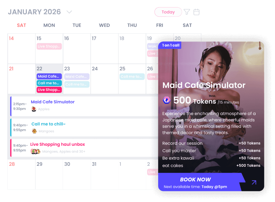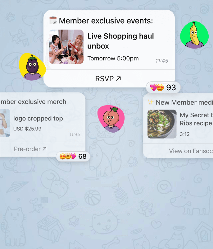 Unify your sales—from videos and merch to paid calls with booking support—and keep your communities updated via direct Twitter & Telegram integration. Boost earnings with smart tools: Wish Tender, custom requests, and a first-of-its-kind negotiation system built to maximize every deal.